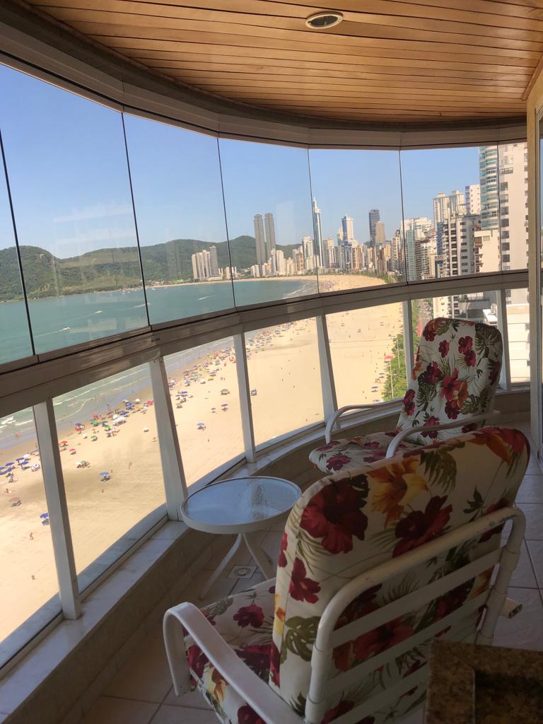 Sacada com churrasqueira e vista ampla de toda praia de Balneário Camboriú